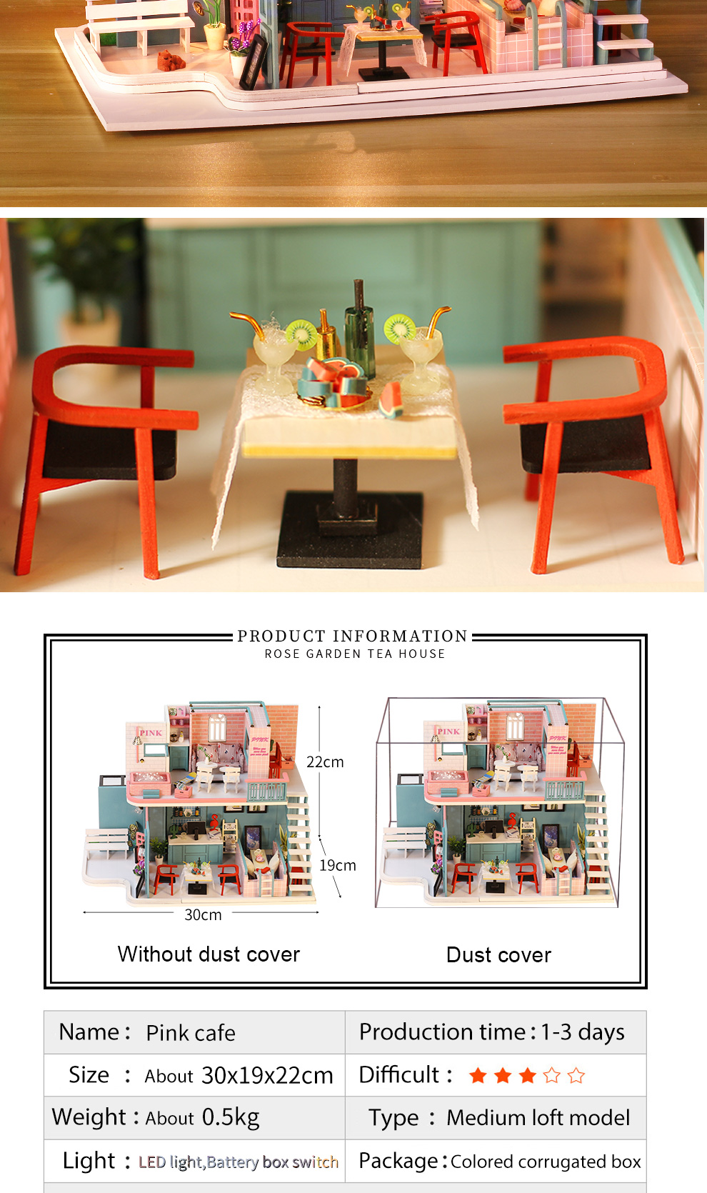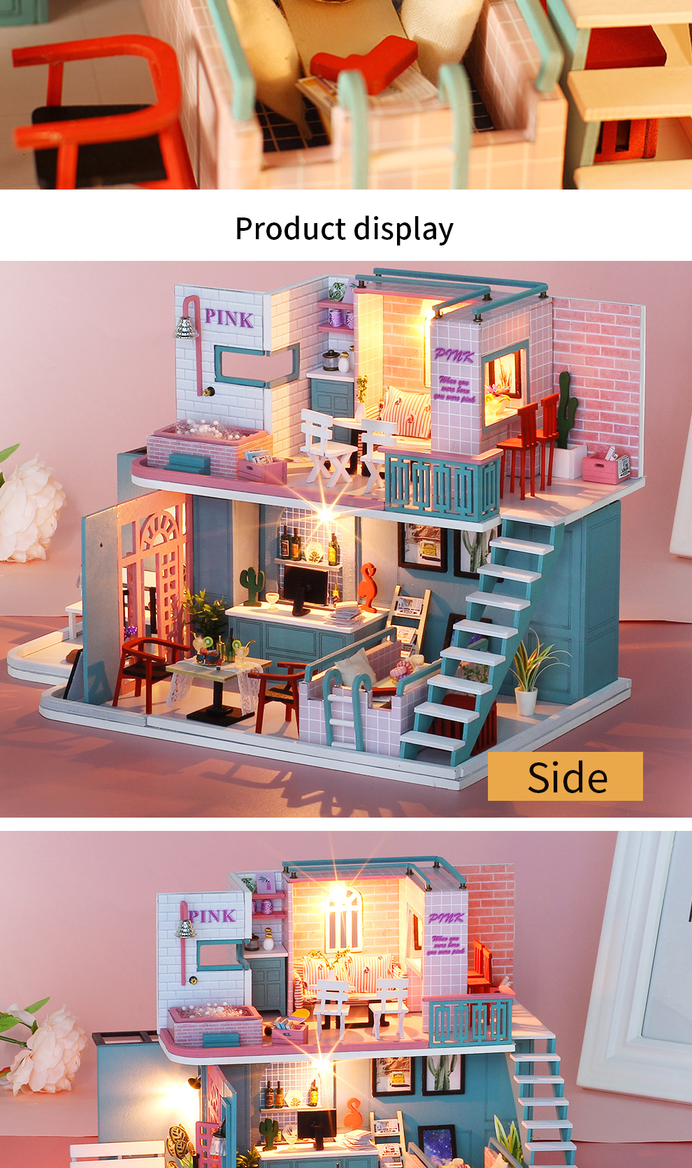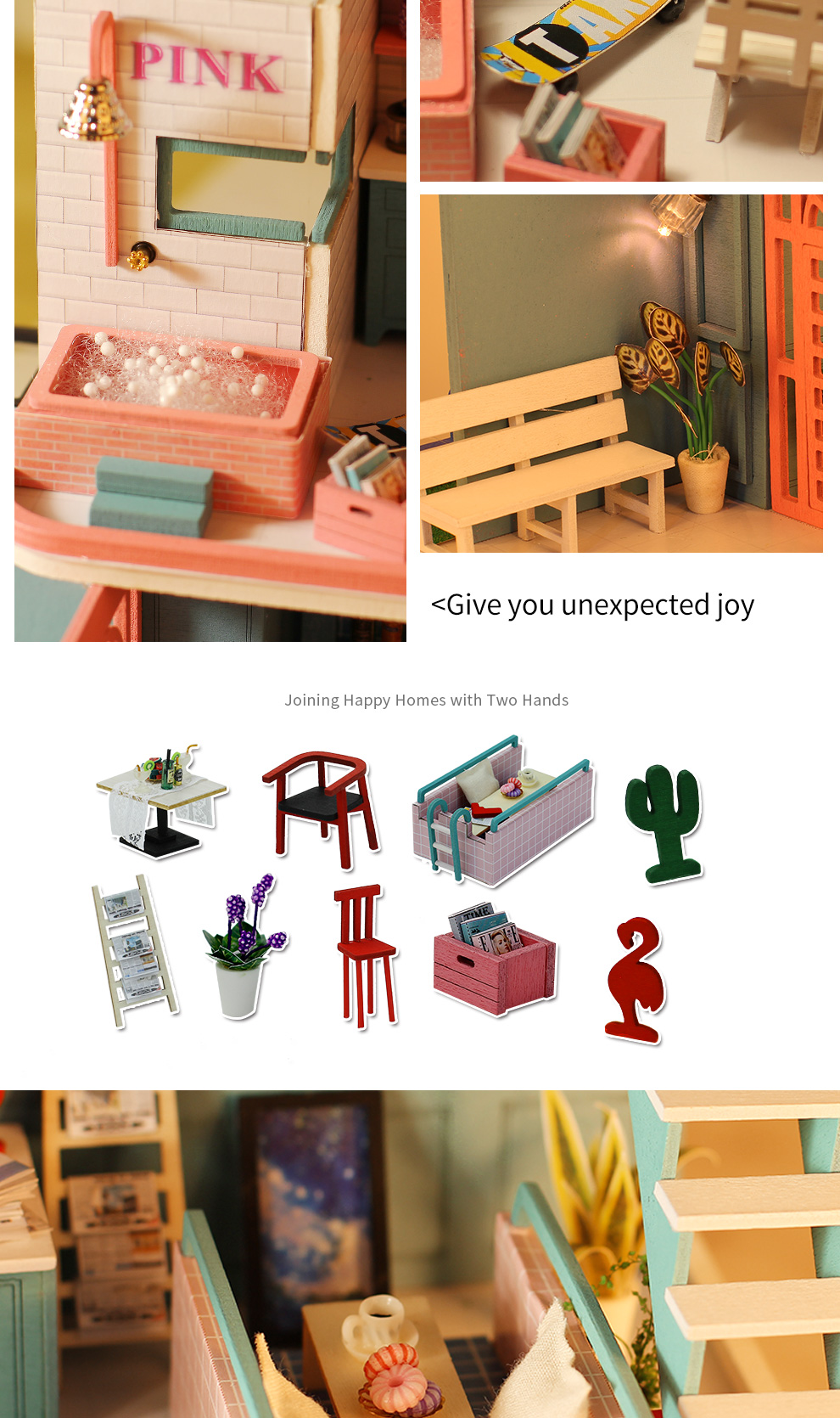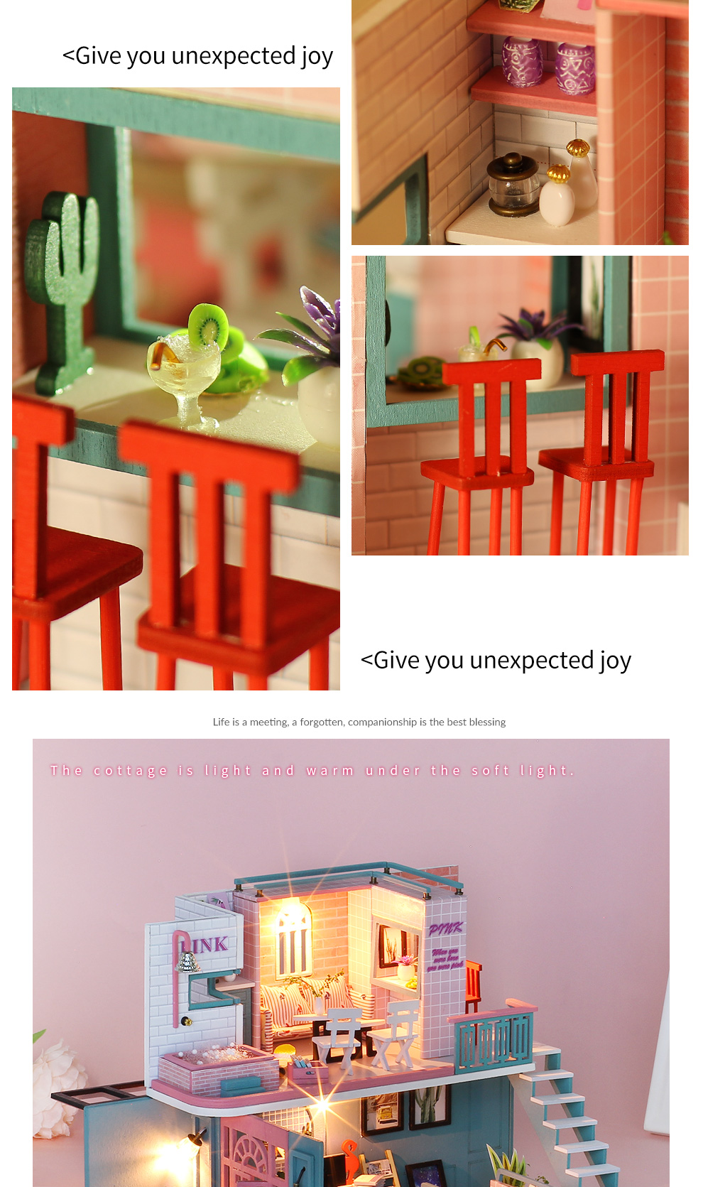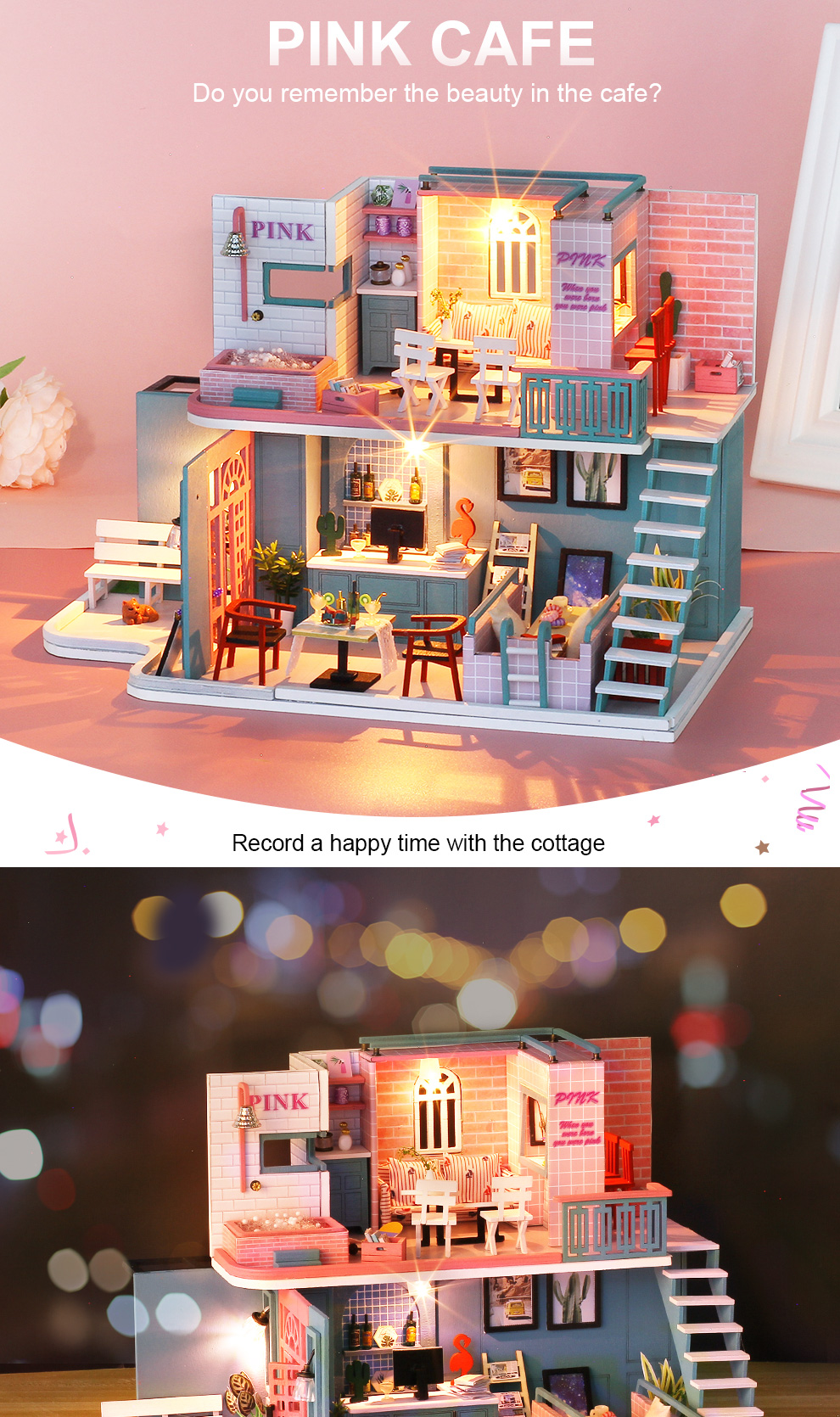 Indulge in the charm of Pink Cafe with our DIY Miniature House! Introducing the Pink Cafe DIY Miniature House, an enchanting kit designed to let you craft your own dreamy miniature coffee haven. Whether you're a DIY novice or an experienced creator, this kit offers an enjoyable and creative experience for all. Constructed with high-quality materials, the Pink Cafe DIY Miniature House allows you to fashion a warm and inviting mini coffee shop right in the comfort of your home. The delightful pink-themed design adds a touch of sweetness to every detail, creating a space filled with surprises. As an extra treat, the kit includes adorable decorations to add a unique and charming flair to your miniature world. Make Pink Cafe the place where cherished moments and memories come to life. Seize the opportunity to bring the Pink Cafe DIY Miniature House into your world today, and let the joy of DIY unfold in the inviting hues of pink!